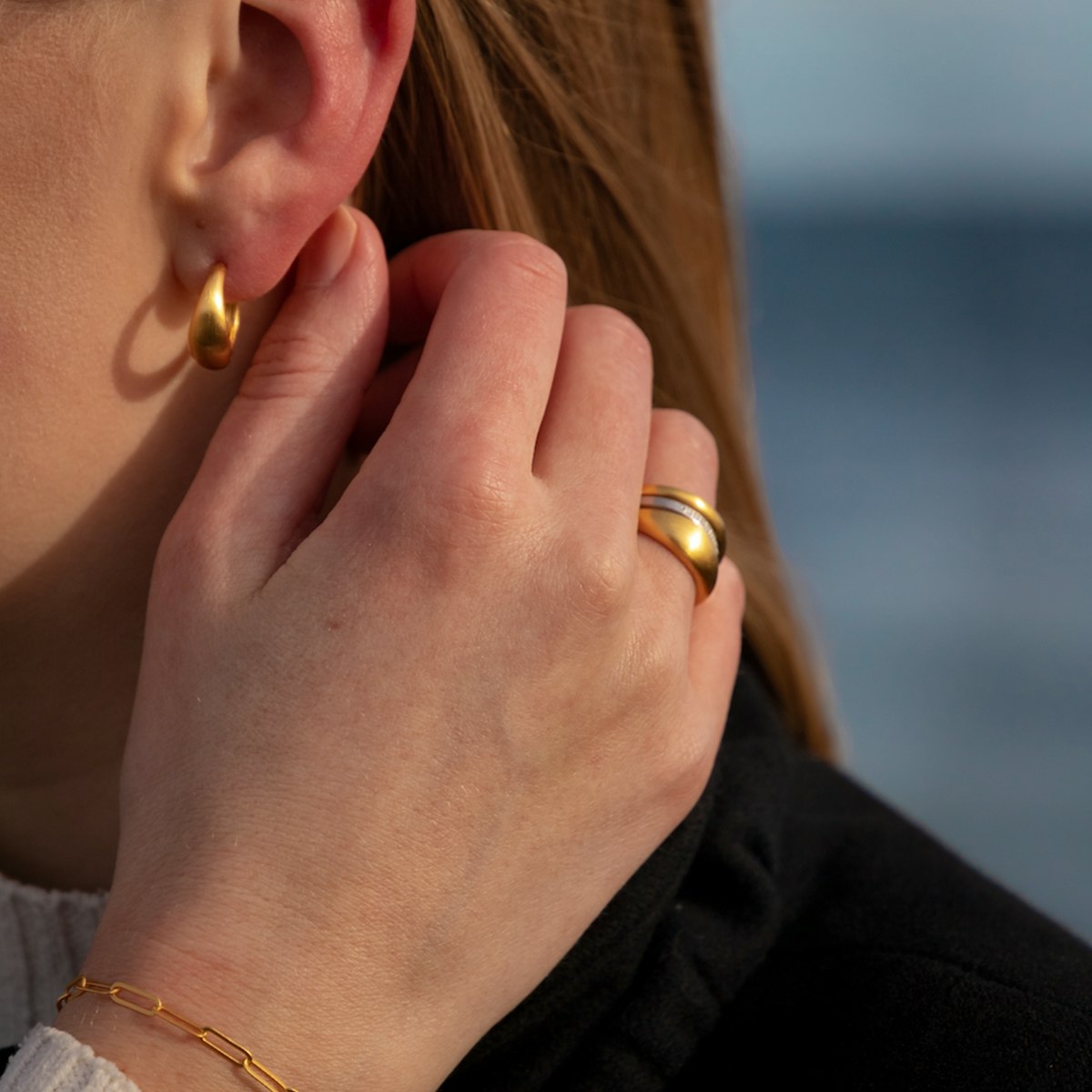 Ocean Flow Ring er perfekt til dig, der ønsker at tilføje et elegant og alsidigt element til din smykkesamling. Den kan bæres alene for et tidløst look eller kombineres med andre ringe for at skabe en personlig og stilfuld kombination. Uanset hvordan du vælger at style den, vil Ocean Flow Ring uden tvivl tilføje et elegant og moderne touch til din look.