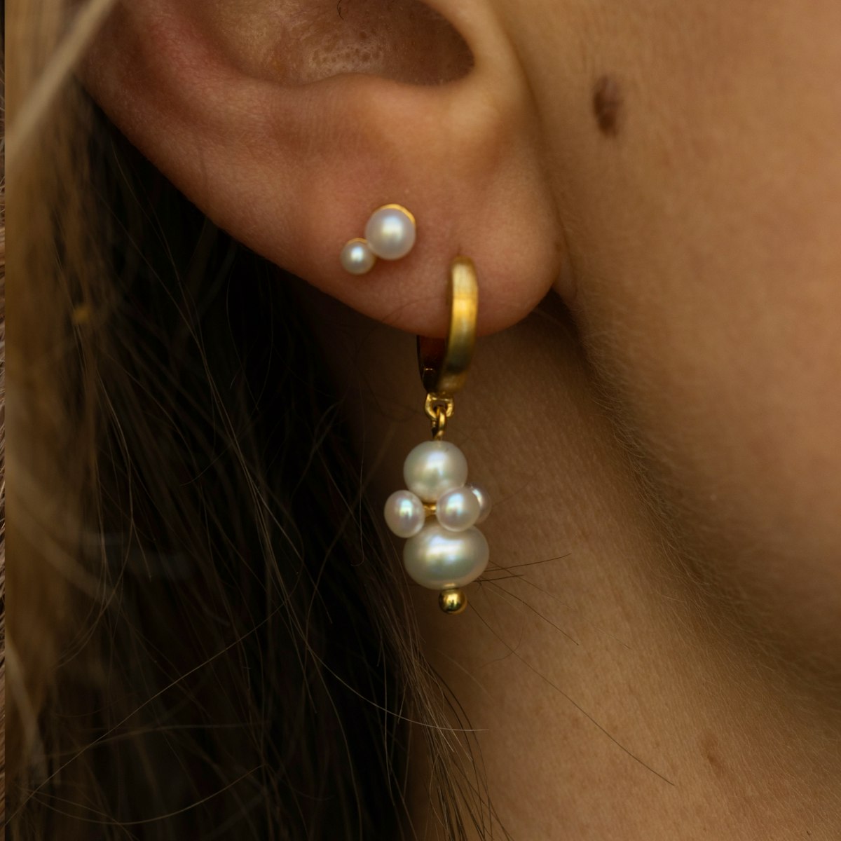 Pearl Cluster Hoop-øreringene er perfekte til både hverdagens og festens anledninger, hvor de tilføjer en subtil, men iøjnefaldende detalje til dit look. De er en ideel tilføjelse til enhver smykkesamling og en uundgåelig accessory for dem, der værdsætter både stil og kvalitet.