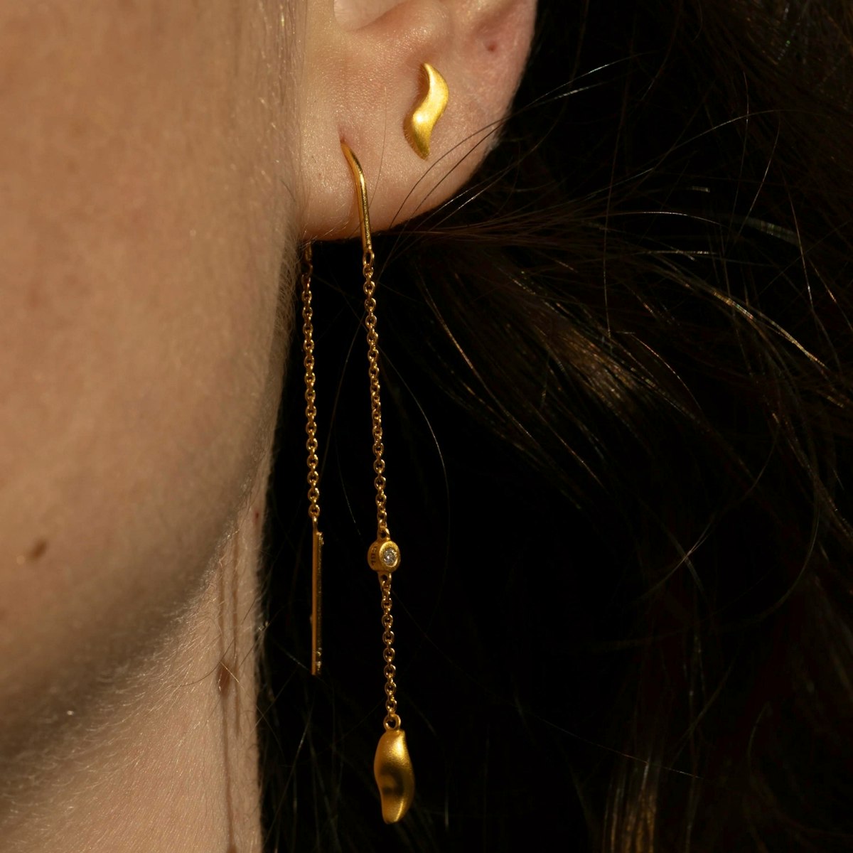 Fås i både forgyldt sølv og sølv, så du kan vælge den finish, der passer bedst til din stil og præferencer. Med Wave Dangling Earrings får du en unik kombination af glitrende skønhed og bølges inspireret design, der sikrer, at dine øreringe skiller sig ud.
