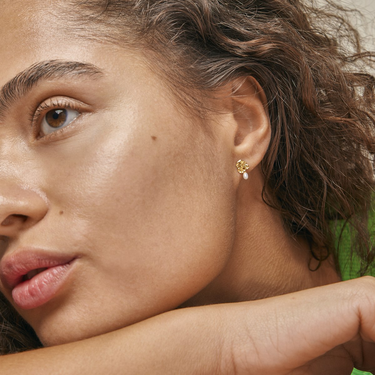 Mio studs er noget helt særligt, og nært beslægtet med Enamel Copenhagens Rio studs. De har samme raffinerede, håndlavede overflade, samt lille størrelse. På vores Mio Pearl stud er der tilføjet en elegant ferskvandsperle, der skaber en sød, kontrastfuld ørestik. Ørestikken er god at sætte i hul to eller tre, samt er nem at kombinere med stort set alle andre slags øreringe.