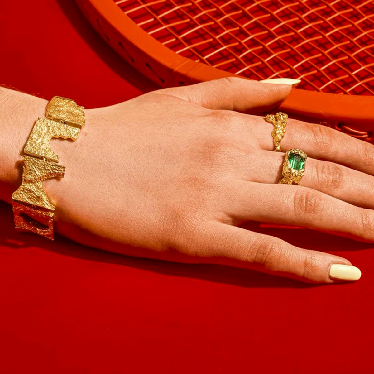Armbåndet er produceret i 100% genanvendt messing, er forgyld i 14 karat.