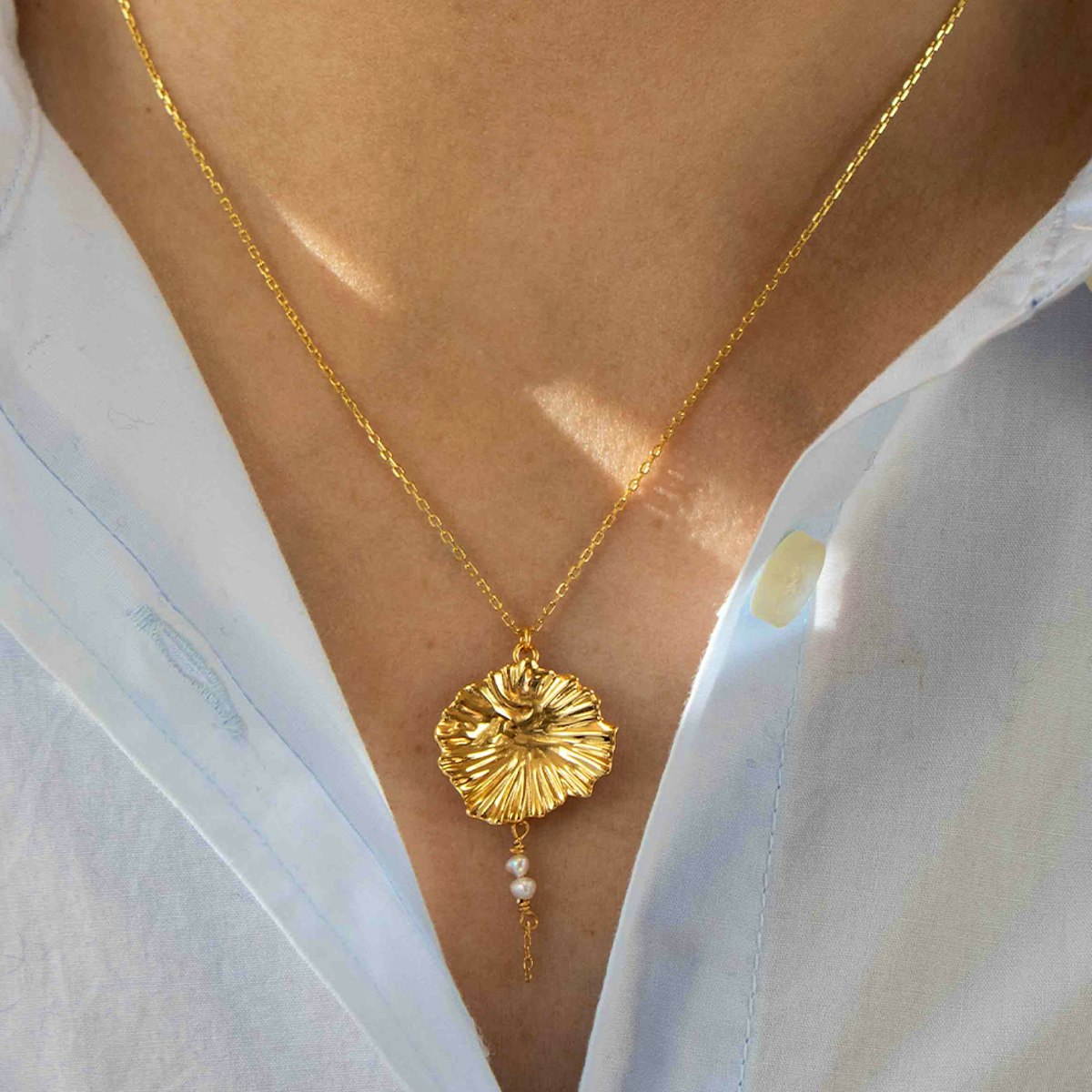 Dyk ned i en verden af naturinspireret mode med den fantastiske Dagmar-halskæde! Dette unikke smykke er en blanding af råt håndværk og elegant design, der skaber bølger i enhver garderobe. Halskæden har en håndlavet søanemone i midten og delikate perler, som tilføjer et strejf af finesse til det robuste design. Dette smykke er det perfekte valg for den eventyrlystne kvinde, der ønsker at udtrykke sin kærlighed til naturen og vise sin unikke stil frem. Så tag med på en rejse ind i naturens skønhed med Dagmar-halskæden, og gør dit look til noget særligt!