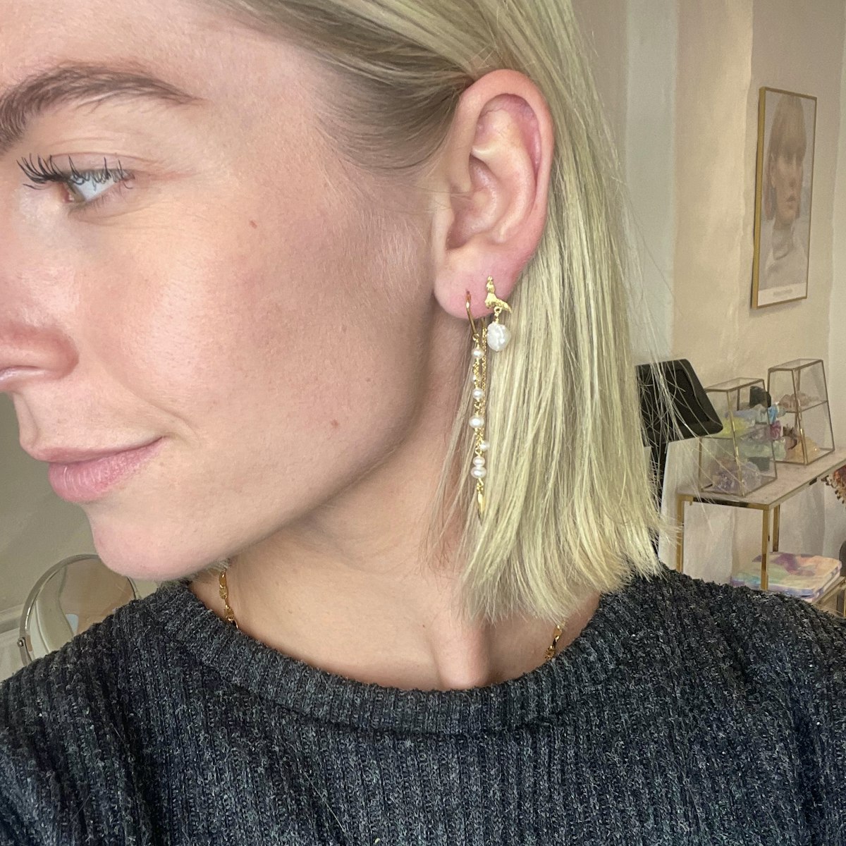 Smukke lange øreringe som bevæger sig i takt med dine bevægelser. Bevægelserne skaber en afslappende og naturlig stemning.