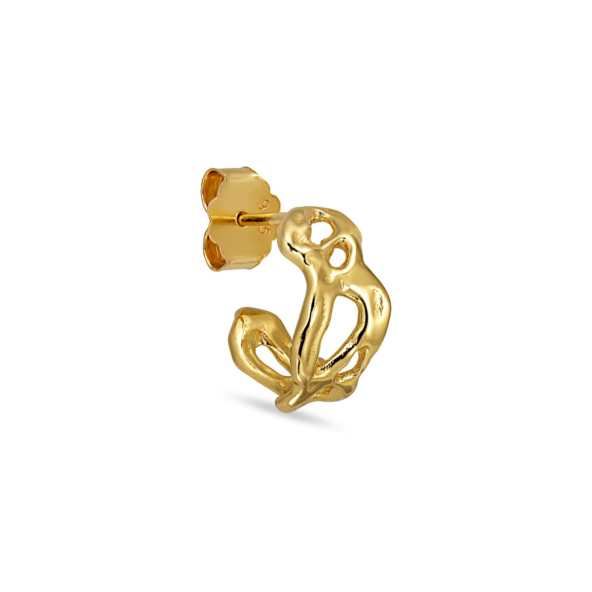Øreringen har et stilfuldt mønster og tilhører "Space Mary"-kollektionen, der blander futuristiske figurer, kors og ferskvandsperler.
