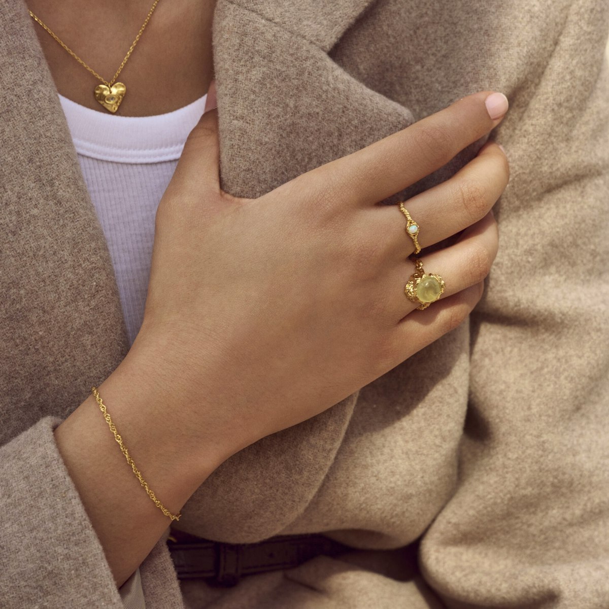 Maanesten's Goddess Ring Prehnit er ringen til dig, der ønsker at skabe tillid og ro på din egen personlige rejse. Ringen med Prehnitten som sten er forbundet med hjertechakraet og vibrerer med en beskyttende energi, som tillader dig at skabe lethed i dit liv. Brug den eventuelt under meditation som et energiredskab, hvis du ønsker at nå dybere ind i din egen forstillingsevne og dine drømme om livet.