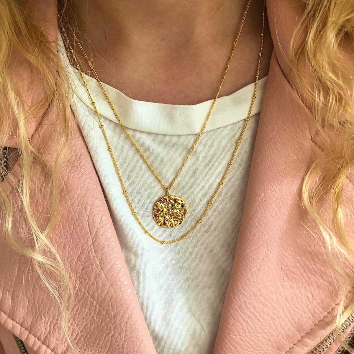 Den smukke og enkle Nala halskæde fra Maanesten med små fine kugler sat hele vejen over kæden. Den smukke halskæde kan kombineres med choker-halskæden og armbånd fra samme kollektion.