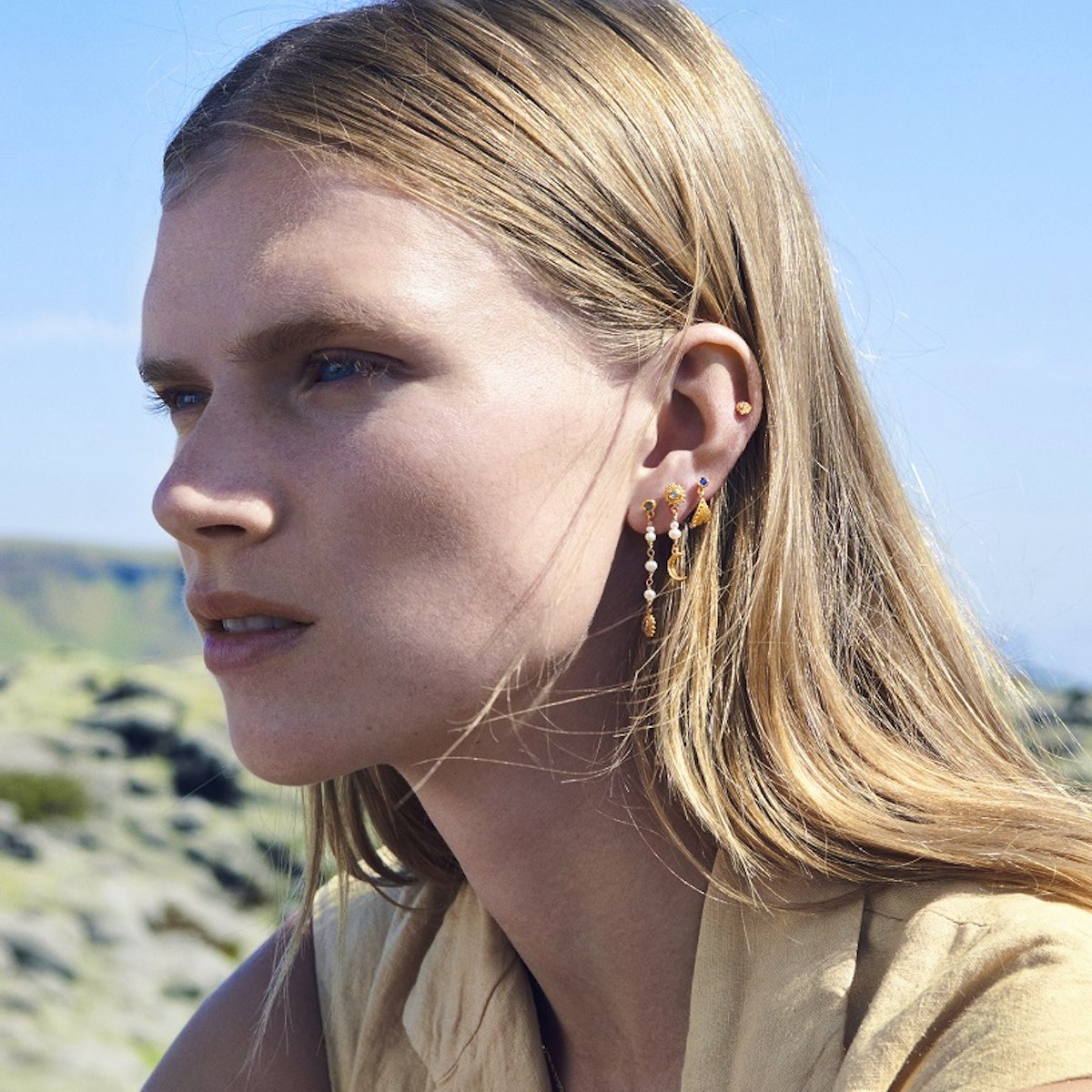 Labradorit og ferskvandsperler kombineres i det mest fantastiske match her i Sunniva øreringene. De er en del af Maanestens AW21-kollektion. Kollektionen hylder både hverdagens magi og mystik.