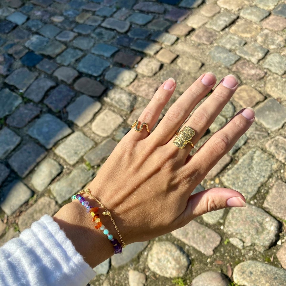 Et organisk og orientalsk udtryk som let kan kombineres med andre enkle armbånd.