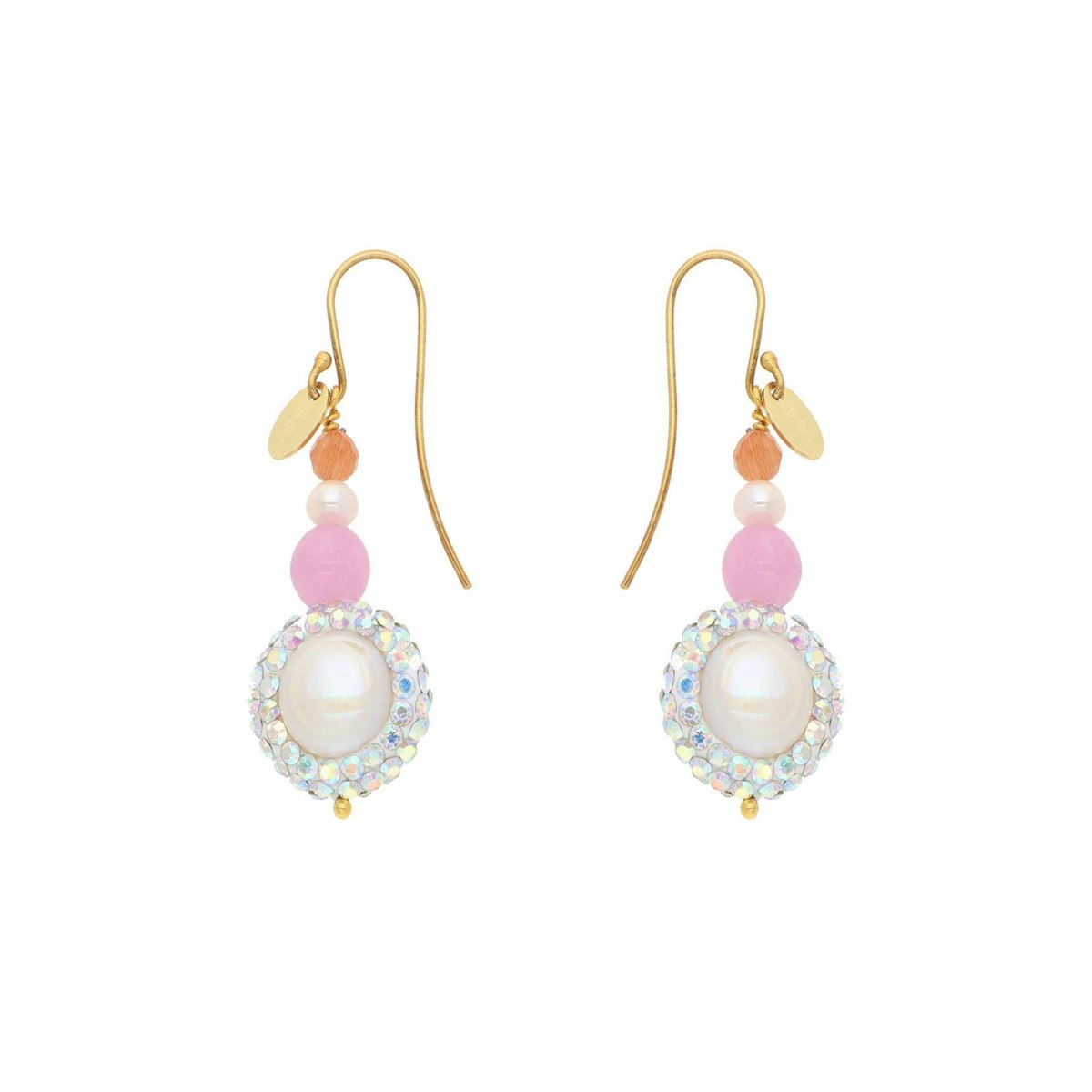 Farverne i Milani Rose er som et lille stykke solnedgang. De rosa, fersken og perlehvide nuancer flyder blidt sammen, mens de fine zirkoner omkring midten fanger lyset og glimter, som var det små stjerner. I midten sidder en rund ferskvandsperle og troner med en blød glans, der giver øreringene et elegant og sofistikeret udtryk.