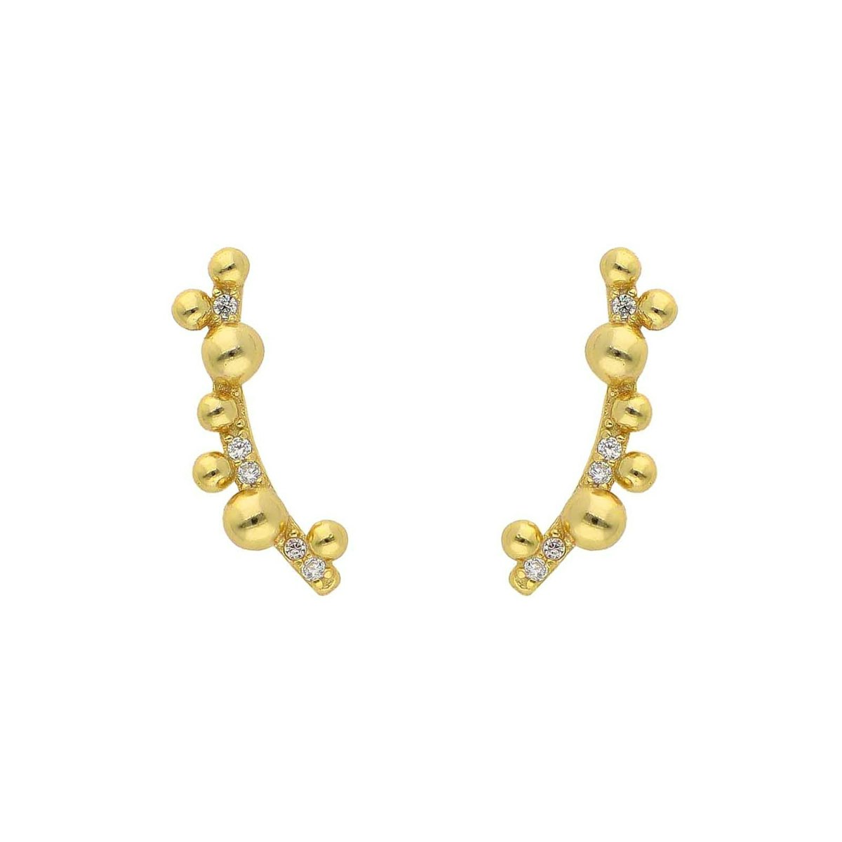 Philadelphia Gold Earrings er et stilfuldt og moderne bud på ørestikker, der både er elegante og legende. Disse ørestikkere er fremstillet i 24 karat forgyldt genanvendt sterling sølv og prydet med funklende zirkonia, der giver et eksklusivt og raffineret udtryk. Kombinationen af de blanke guldkugler i forskellige størrelser og de klare sten skaber et dynamisk og iøjnefaldende design, som skiller sig ud fra mængden.