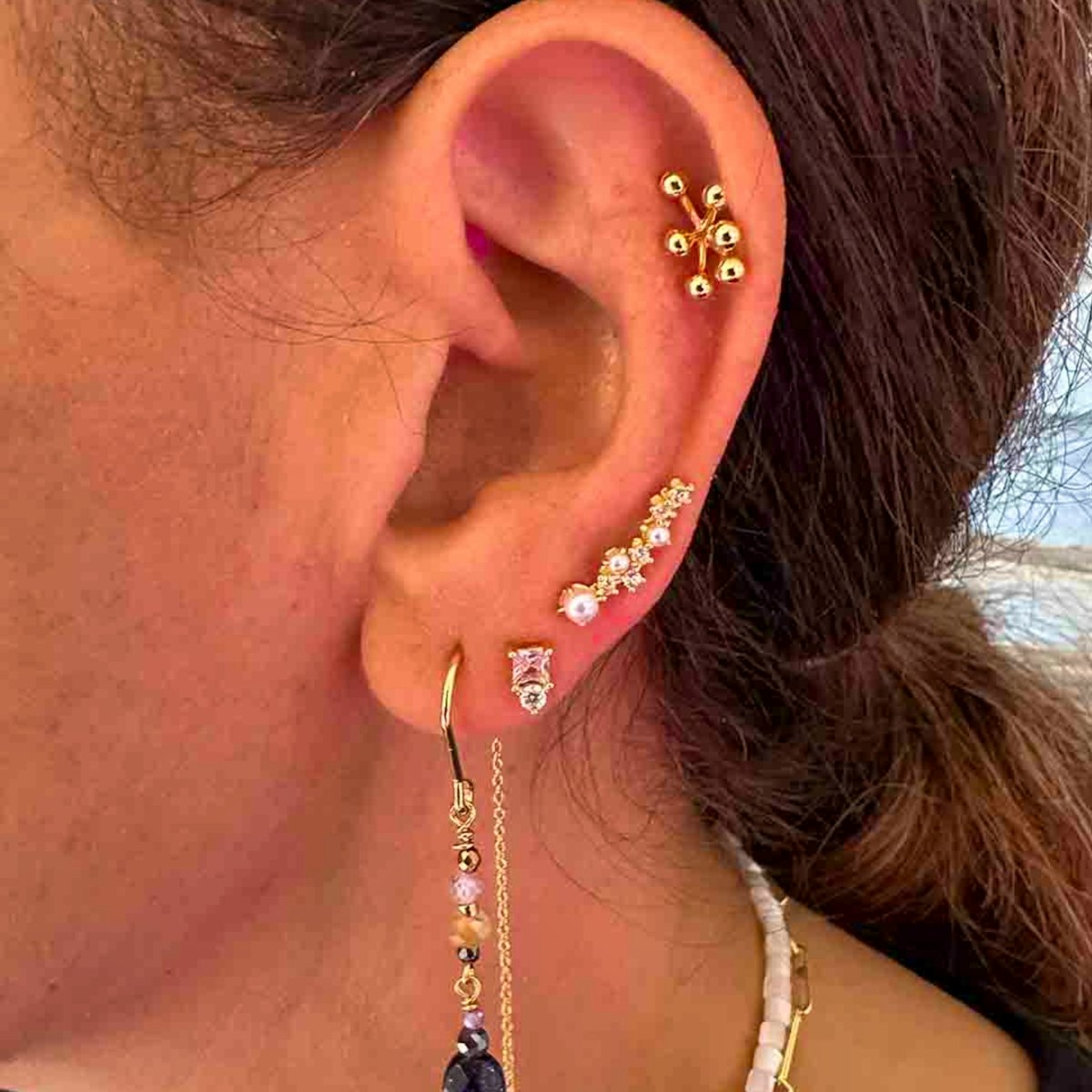 Stella Pearl Earrings er indbegrebet af ynde og femininitet. Disse elegante ørestikker er skabt til dig der elsker et klassisk og romantisk udtryk med et moderne twist. Designet har en blid kurve der følger ørets form og skaber et smukt løft som fremhæver ansigtets naturlige træk på fineste vis.