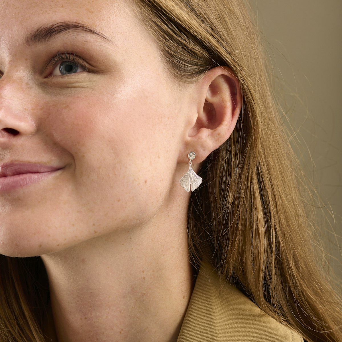 Smukke øreringe der er inspireret af bladene på et Gingko Biloba-træ, der har den fineste form og struktur.