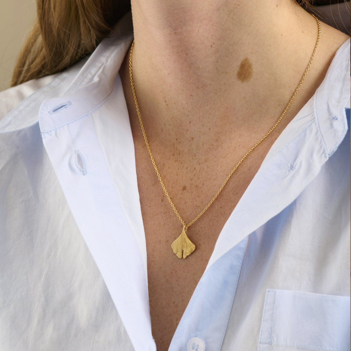 Den unikke halskæde er inspireret af bladene på et Gingko Biloba-træ, der har den fineste form og struktur.