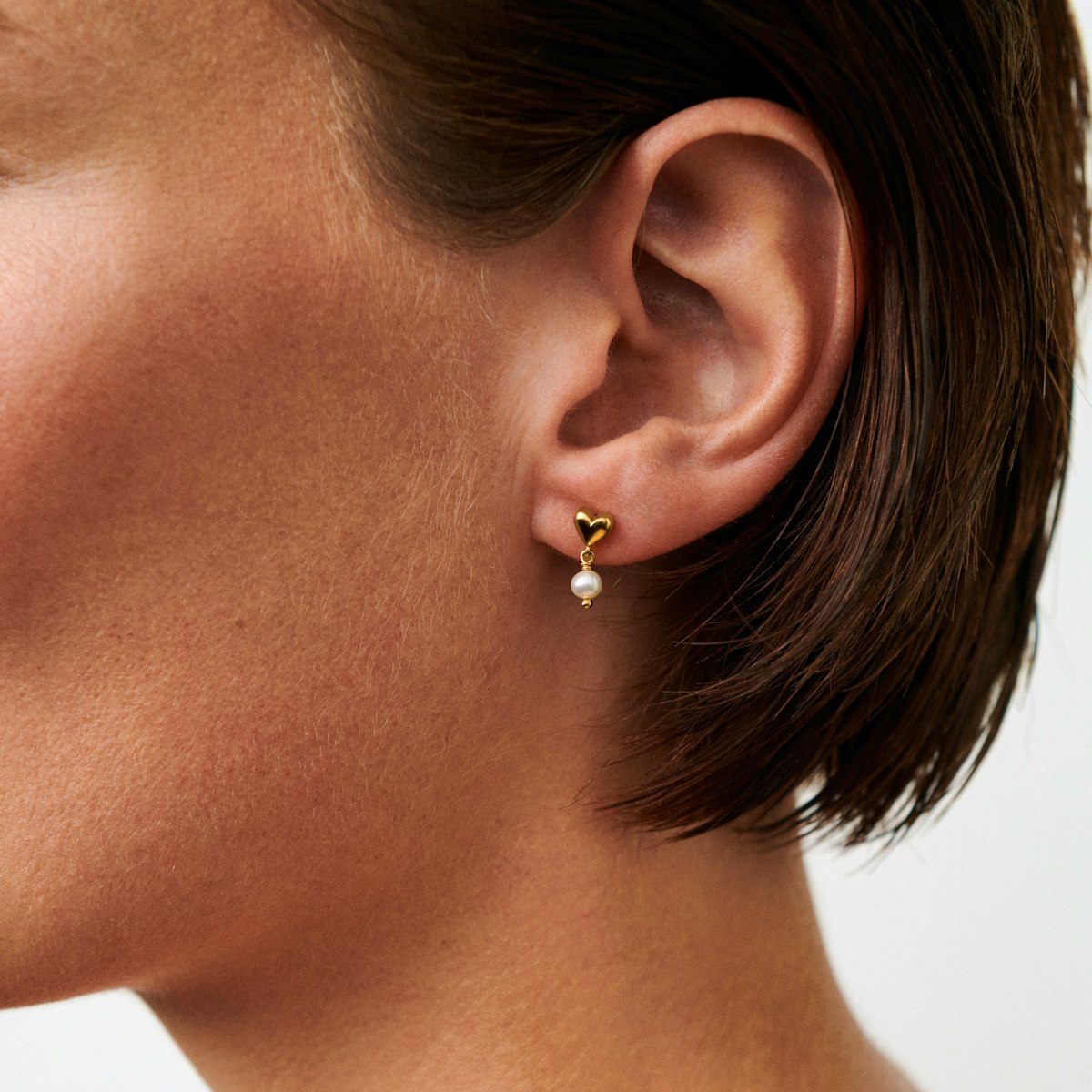 Smykkerne er fremstillet i 100 % certificeret, genanvendt sterlingsølv, hvilket giver en solid og holdbar kvalitet, samtidig med at designet fremstår let og elegant. Hjerterne måler 5 mm og perlerne 4 mm, hvilket gør øreringene diskrete, men stadig iøjnefaldende nok til både hverdag og særlige anledninger. De kan bruges alene for et klassisk og stilrent look eller kombineres med andre øreringe fra Pernille Corydon for et mere personligt smykkeudtryk.