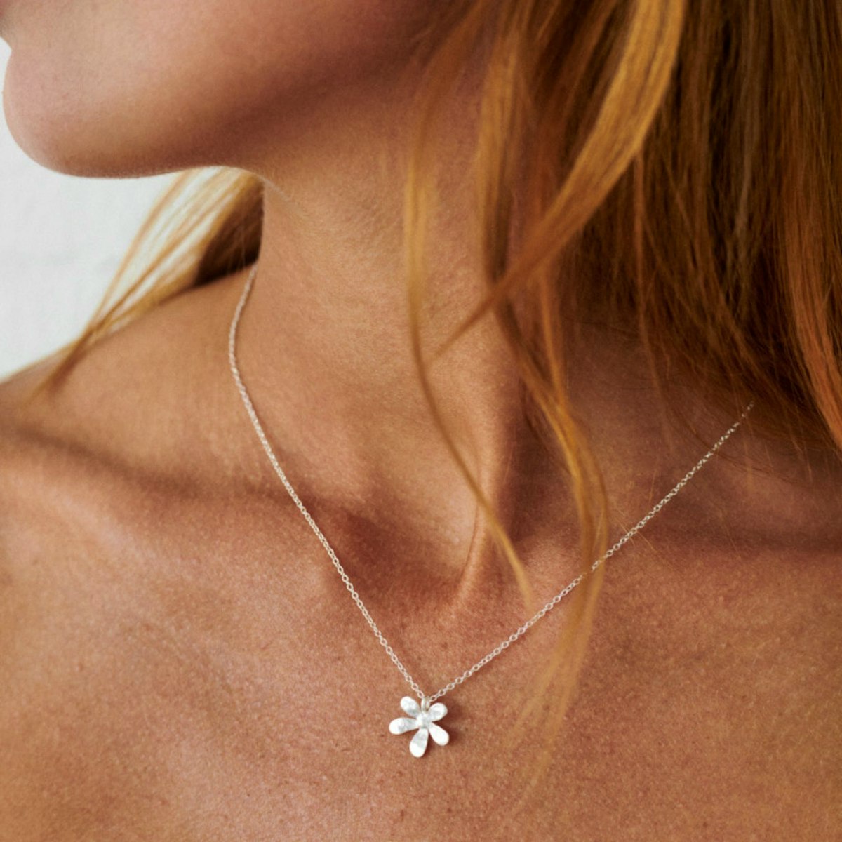 Wild Poppy Necklace er tilgængelig i både sølv og forgyldt sølv, hvilket giver mulighed for at vælge det perfekte udtryk af ens egen stil og præferencer. Uanset om du vælger sølv eller forgyldt sølv, er halskæden et symbol på elegance og en forbindelse til naturen og du kan bæres den med glæde og stolthed.