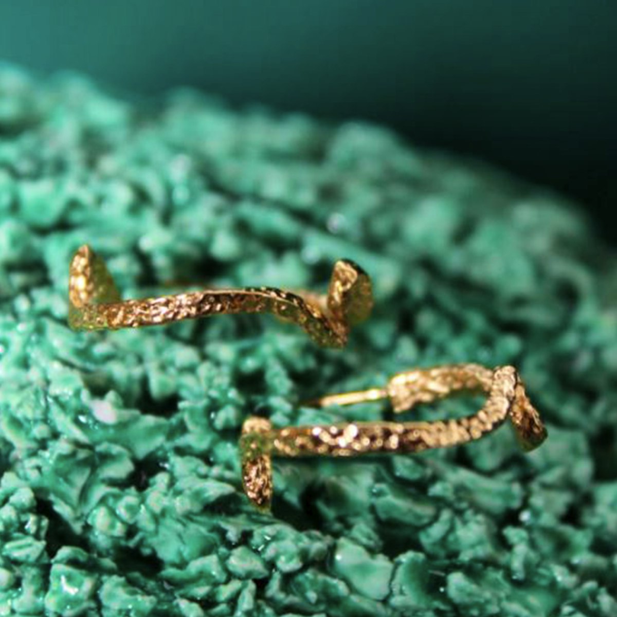 Remark Beat studs fra Pico Copenhagen er ikke bare øreringe: de er en erklæring om stil og attitude. Deres unikke design kombinerer elegance med en rå kant, hvilket gør dem til det perfekte tilbehør til enhver lejlighed. Med deres snoede form og smukke hammerslåede overflade skiller de sig ud fra mængden og tilføjer et strejf af personlighed til ethvert outfit,