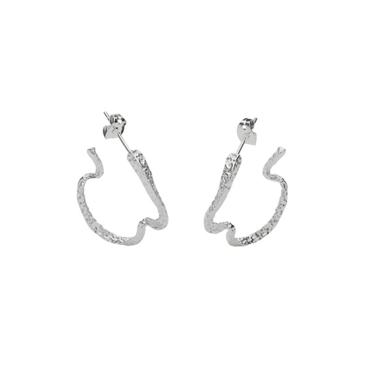 Øreringene findes i forsølvet messing og forgyldt messing, og har en bredde på 24 mm og en længde på 25 mm. Bær dem alene som et statement-piece eller kombiner den med andre smykker, som du kan finde hos A-Hjort.