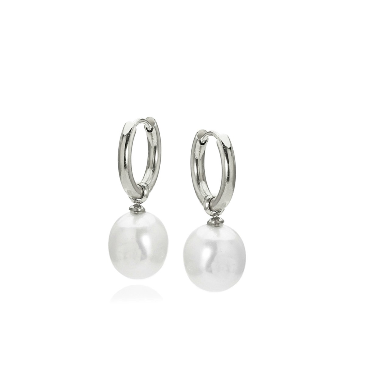 Denne lille creol er designet med en aftagelig barok ferskvandsperle og fremstillet i rustfrit stål eller 18kt forgyldt stål.