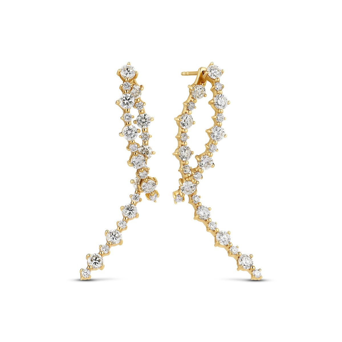 Brina Lungo øreringene kombinerer elegant længde med imponerende brillans. Øreringene er indfattet med runde, brillant-slebne lab-grown diamanter med en samlet caratvægt på 2.43 ct. Diamanterne har TW G-H farve og VS klarhed, hvilket sikrer en klar, strålende glans, der fanger lyset og tilfører dit look en sofistikeret energi.