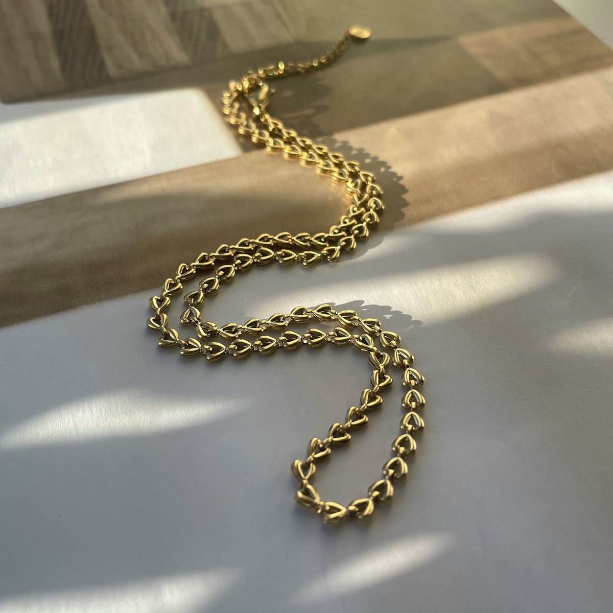 Victoria halskæden er mere end bare et smykke; det er en symbolsk repræsentation af kærlighed og elegance. Det gentagne hjerte-design udstråler en følelse af kontinuitet og sammenhæng, hvilket gør det til et smukt udtryk for romantik og forbindelse.