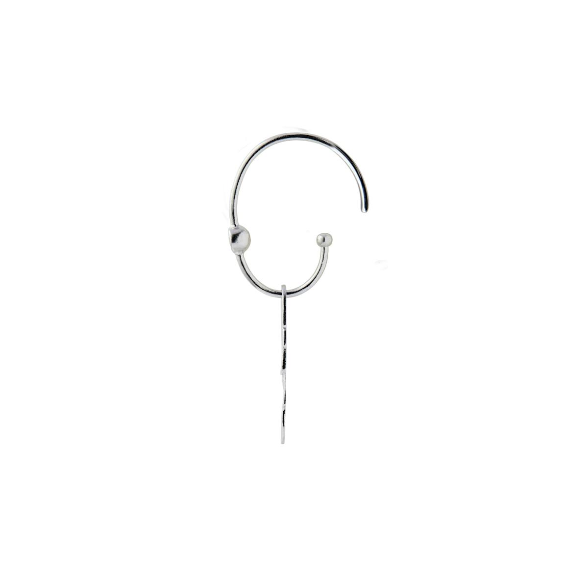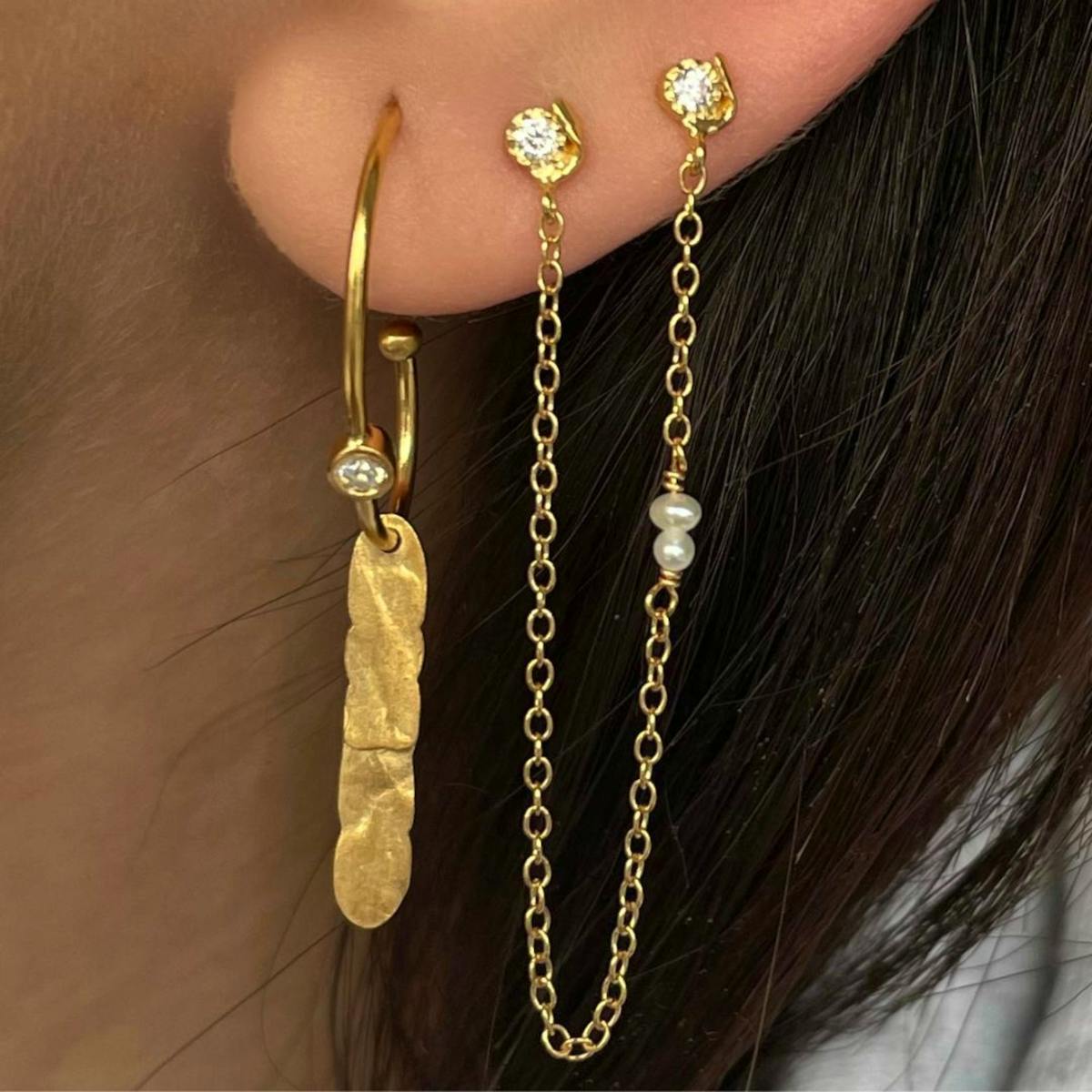 Mega cool hoop ørering med ædelsten og vedhæng med et råt look i banket overflade.