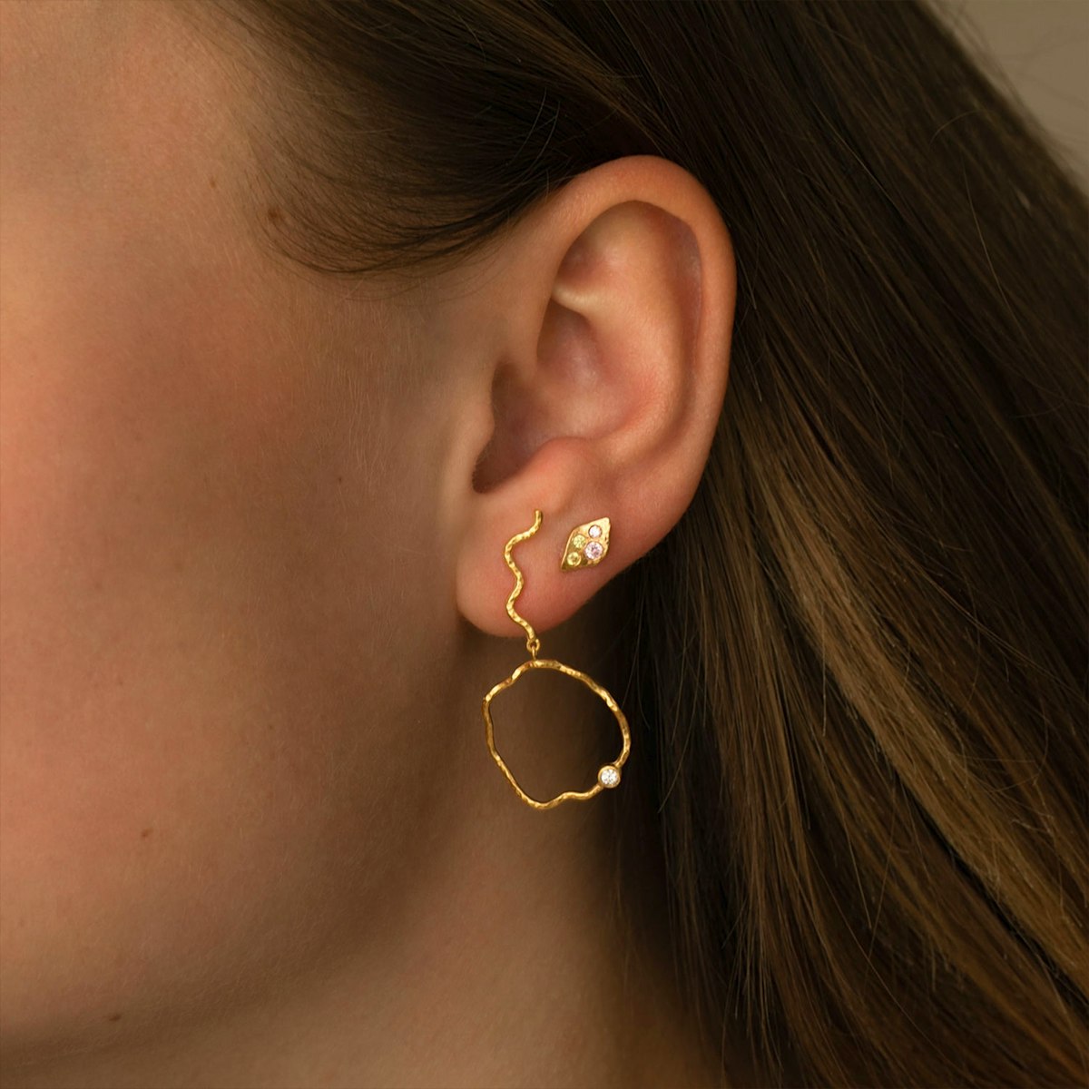 Petit Ile De L'Amour With Stones Earstick - Light Pink Sorbet fra Stine A er en smuk og lille ørestik med en banket overflade detaljeret med fire farverige zirkoner.