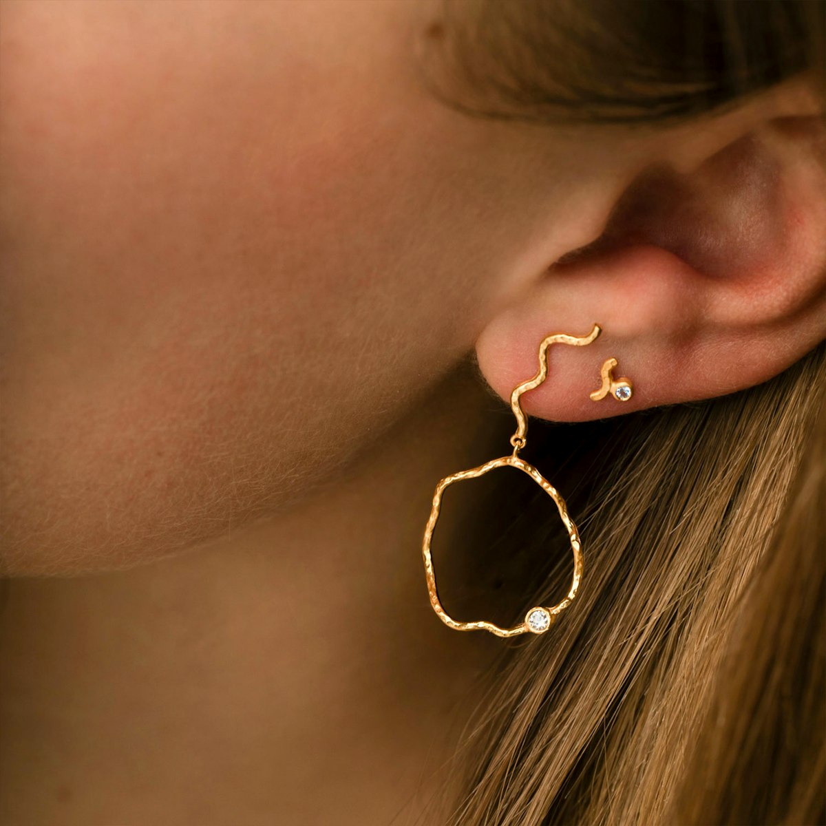 Petit Wave Earstick With Stone - Light Blue fra Stine A er en ørering med en smuk og bølget struktur. På forsiden af øreringen ses en blå zirkon.