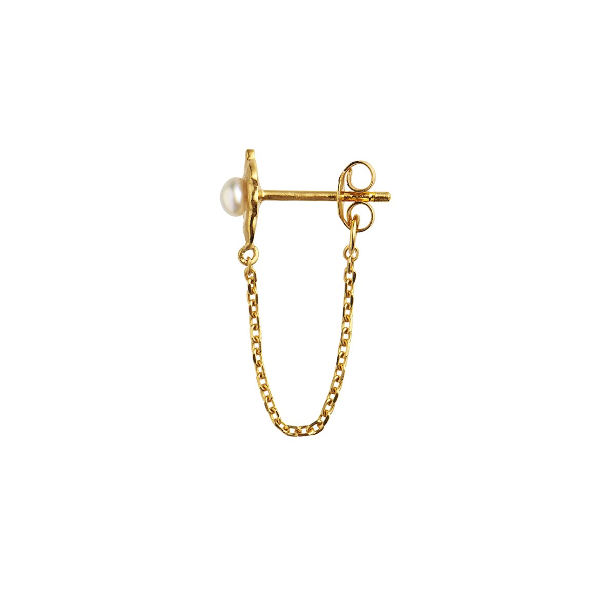 Flot lille ørestik med et råt look tilføjet et strejf af elegance i den lille ferskvandsperle. Øreringen har en kæde som er forbundet med låsen, og kommer derfor til at hænge så fint fra fronten af øret til bagsiden og skaber et sejt look.