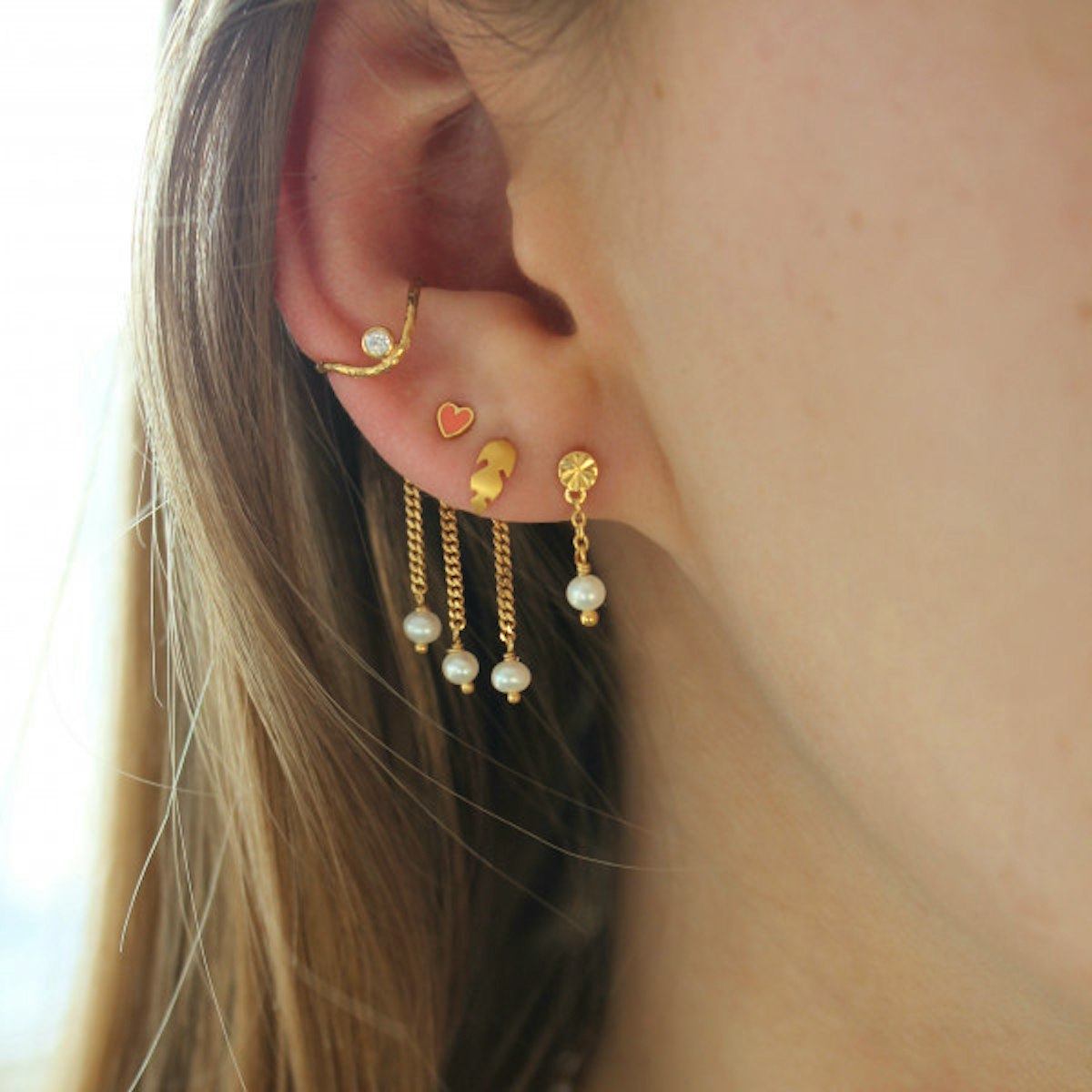 Tres Petit Etoile Earring with Pearl er et tidløst elegant design, der har fået et moderne touch. Kæden tilfører en levende bevægelse til smykket, hvor perlen bibringer et element af naturlig skønhed og finesse. Ferskvandsperler er kendt for de unikke former og farver, hvilket betyder, at hver perle i sig selv er et kunstværk skabt af naturen.