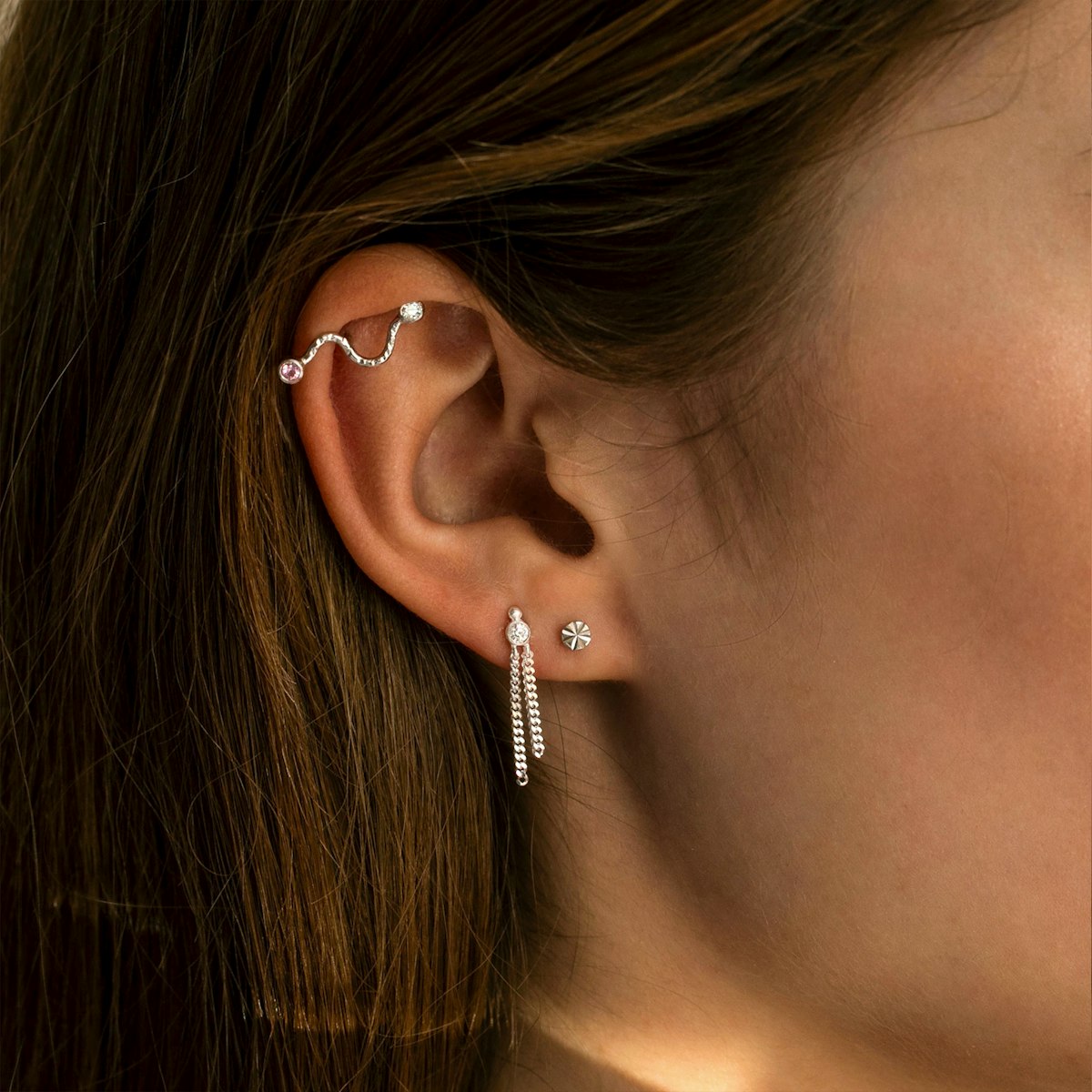 Trés Petit Etoile Earstick fra Stine A er en lille rund ørering med de smukkeste detaljer af diamond cut slibninger i overfladen.