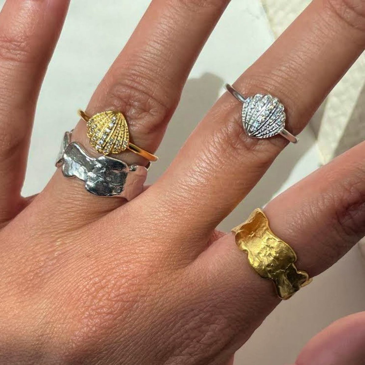 En smuk ring med en rustik overflade og nøje udvalgte ædelsten, der skaber en magisk udstråling.